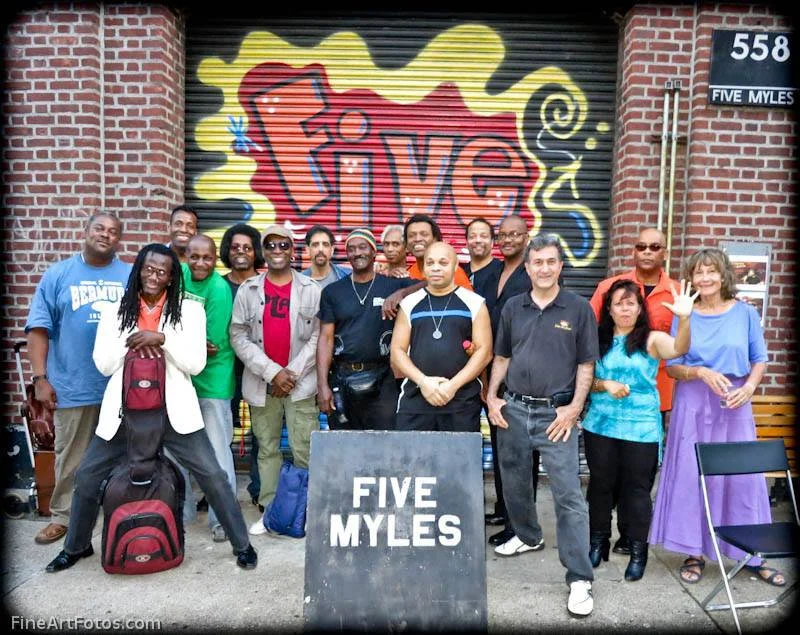 Bama’s band and a bunch of great people at Five Myles gallery in Brooklyn. From left: Ron Smalls. bassist, Larry Fitzgerald, guitarist,Marvin Gibbs, guitarist, BAMA, drummer, tk,tk,tk, Wicked Gary Fritz, tk, Melvin Gibbs, T., Khadre Smith, guitarist, tk, Flint,tk, tk, Hannah, manager of Five Myles.