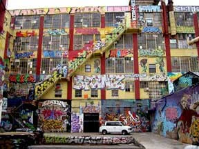 The Phun Phactory, in Long Island City, Queens was also called "5 Pointz" for the five boroughs of New York. The main factory / warehouse building was covered in Graff art from the seventies until around 2014 when the buildings were demolished.